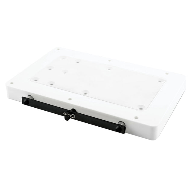 Easily remove your electric-steer, bow-mount trolling motor featuring QUEST technology. High-yield composite construction is super strong and impervious to corrosion and specifically designed for higher thrust motors and longer shaft lengths. Low-profile design leaves deck clear when motor is removed. Locking handle with stainless steel pins can be secured with padlock (padlock not included, sold separately).