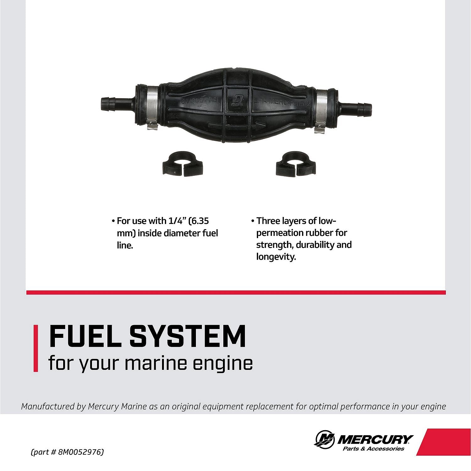 Mercury Primer Bulb 8M0052976 for 1/4-Inch (6.35 mm) Inside Diameter Fuel Lines — OEM replacement part.