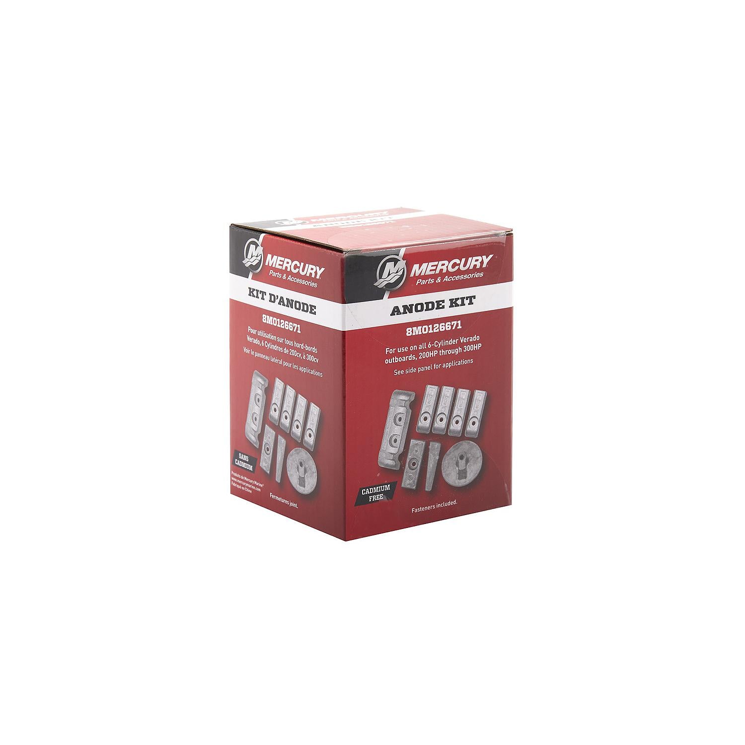Mercury Aluminum Anode Kit 8M0126671 helps protect Mercury L6 200-400hp Verado outboards from the harmful effects of galvanic corrsion in both fresh and saltwater applications.
