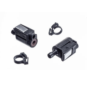 Quick disconnect fitting 13563Q7 fits all Mercury and Mariner outboards using the clip on type quick disconnect fitting at the fuel tank end. The fuel line barb fitting is for 5/16 in. (8mm) ID fuel line hose.