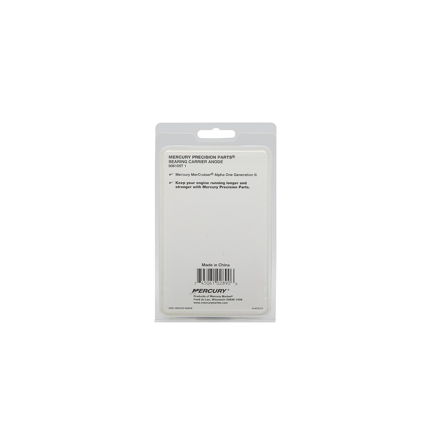 Mercury Aluminum Bearing Carrier Anode 806105T1 helps protect your engine from the harmful effects of galvanic corrosion. It is designed to fit MerCruiser Alpha One Gen II and Vazer drives, and can be used in both fresh and saltwater.