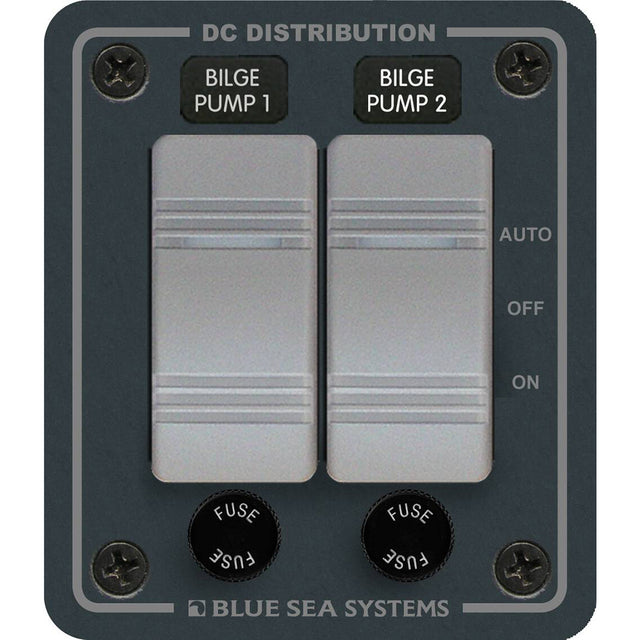 Blue Sea Systems water resistant 12/24 Volt DC Bilge Pump control panel with Contura rocker switch and fuse holder for fuses up to 20amp