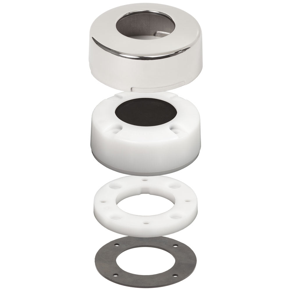 - A polished stainless steel dress cap conceals mounting hardware, matches other deck hardware and offers protection from UV