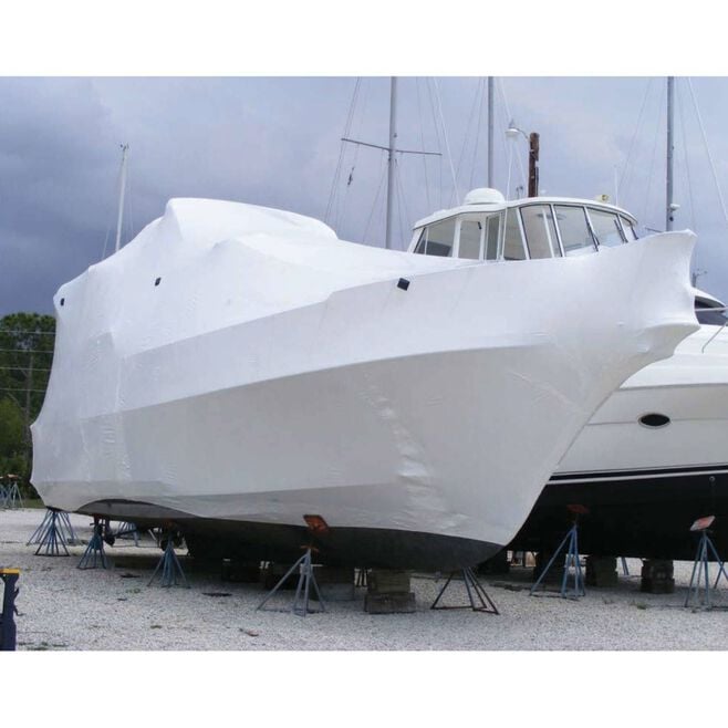 Shrink wrap systems are a great way to protect boats stored in the off season, build temporary structures to contain construction dust or cover unused equipment. Shrink wrapping creates a versatile waterproof barrier that stands up to the environment. Completely covering the boat helps to keep out rodents and protect canvas from bird droppings, dust and debris. Because it is heat tensioned, shrink wrap eliminates pooling and sheds snow to reduce the risk of collapsing from snow loads. The tight material remains stable in high winds and will not chafe gel coat and paint.