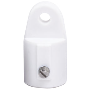 Top Fittings connect to tubing as a Top Cap or Top Insert for 3/4” or 7/8” round tubing or 1” square tubing. Top Fittings create an attachment point and function as a pivot point as part of a Bimini top system. Pin size 1/4”. Constructed of UV stabilized injection molded nylon. Available in black or white. *Stainless tube wall thickness 0.049”.
