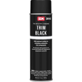 Trim Black is an acrylic coating formulated to match the OEM finish on automotive trim components. For use on plastic, aluminum, steel, stainless steel, and chrome.