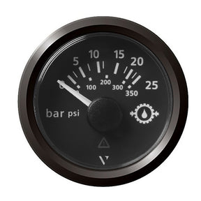 52MM (2-1/16") ViewLine Transmission Oil Pressure 25 Bar/350 PSI - Black Dial & Triangular Bezel