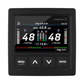 The new OceanLink® 4.3" multifunction TFT Display features a complete 24-bit/16 m colors optically bonded display with transmissive layer technology for perfect readability even in direct sunlight. The TFT Display shows and distributes a wide array of data received from NMEA 2000® and J1939 CAN Bus systems and analog sensors directly connected to the display. Users can customize up to 40 data pages with single, double, treble, or quad grid layouts.