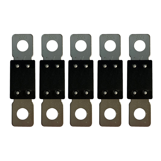Victron Energy's MEGA fuses are frequently used in Victron Energy DC distribution systems. This particular pack of Victron MEGA fuses contains five 500 amp fuses.