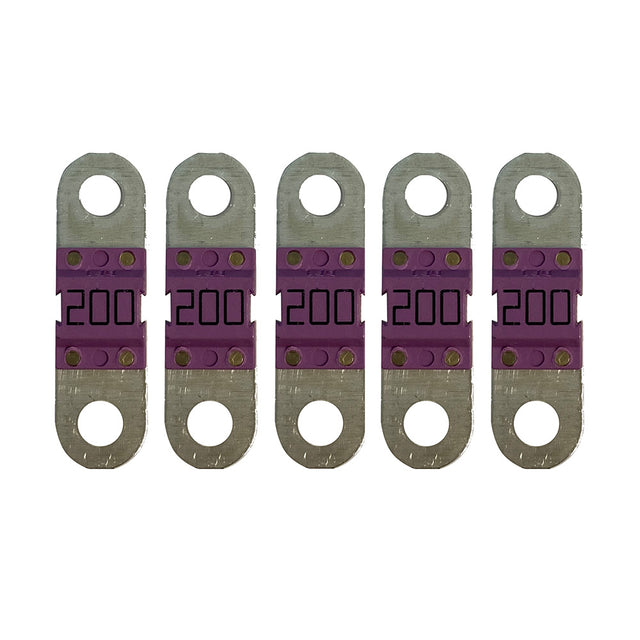 Victron Energy's MIDI fuses are essentially a smaller version of the MEGA fuses and are known to have low voltage drop and cold resistance. This particular pack of Victron MIDI fuses contains five 200 amp fuses.